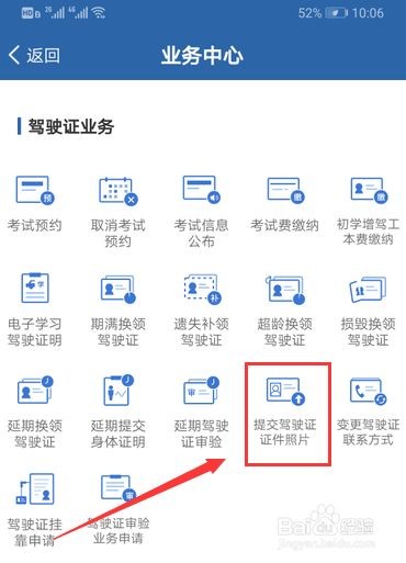 3.业务中心界面,点击“驾驶证业务”下方“提交驾驶证证件照片”。