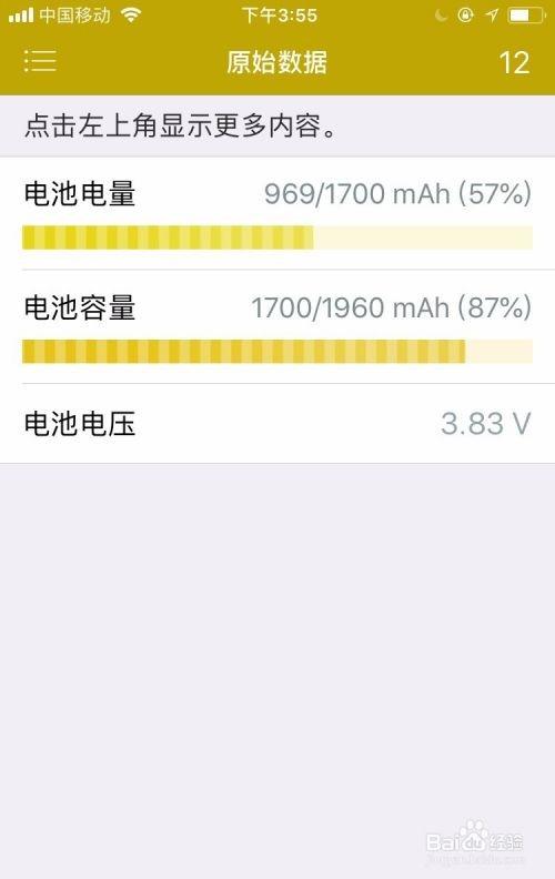 3、打开“电池寿命”,点击“原始数据”,可以查看电池电量、电池容量以及电池电压。