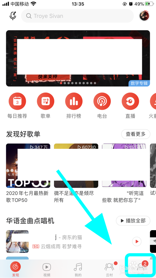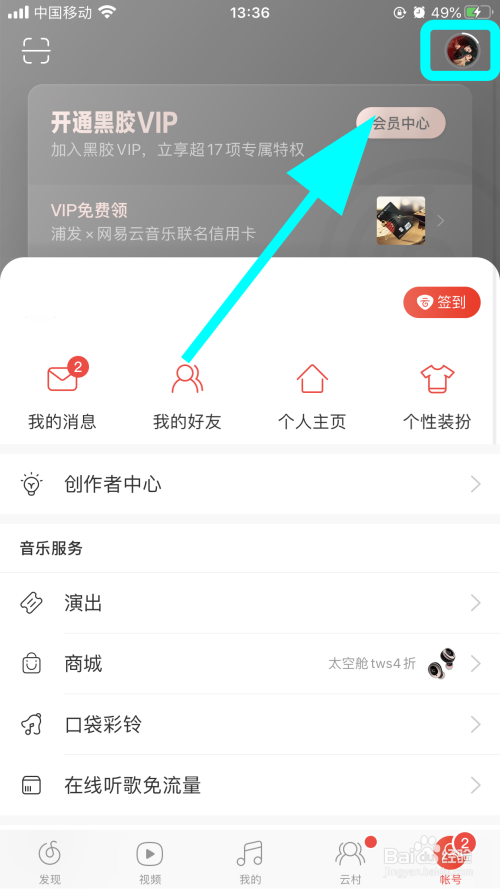 进入个人中心,点击右上角的【正在播放歌曲】;