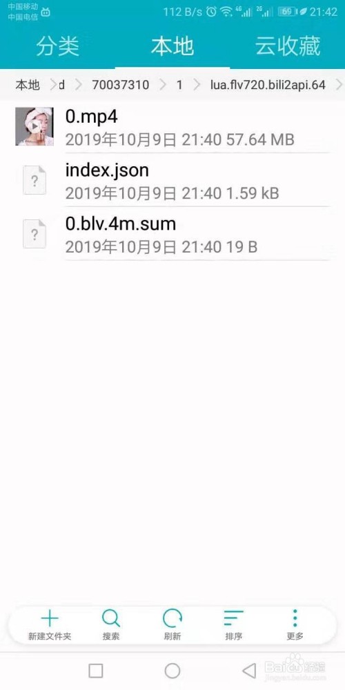 在文件管理中找到我们视频所在的文件夹 -->找到后缀为blv的文件,这就是我们刚刚下载的视频