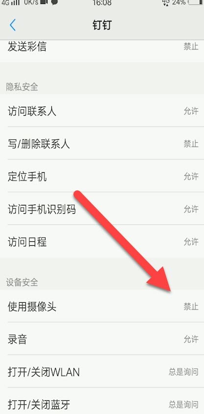 下滑屏幕,将使用摄像头的权限设置为禁止即可。
