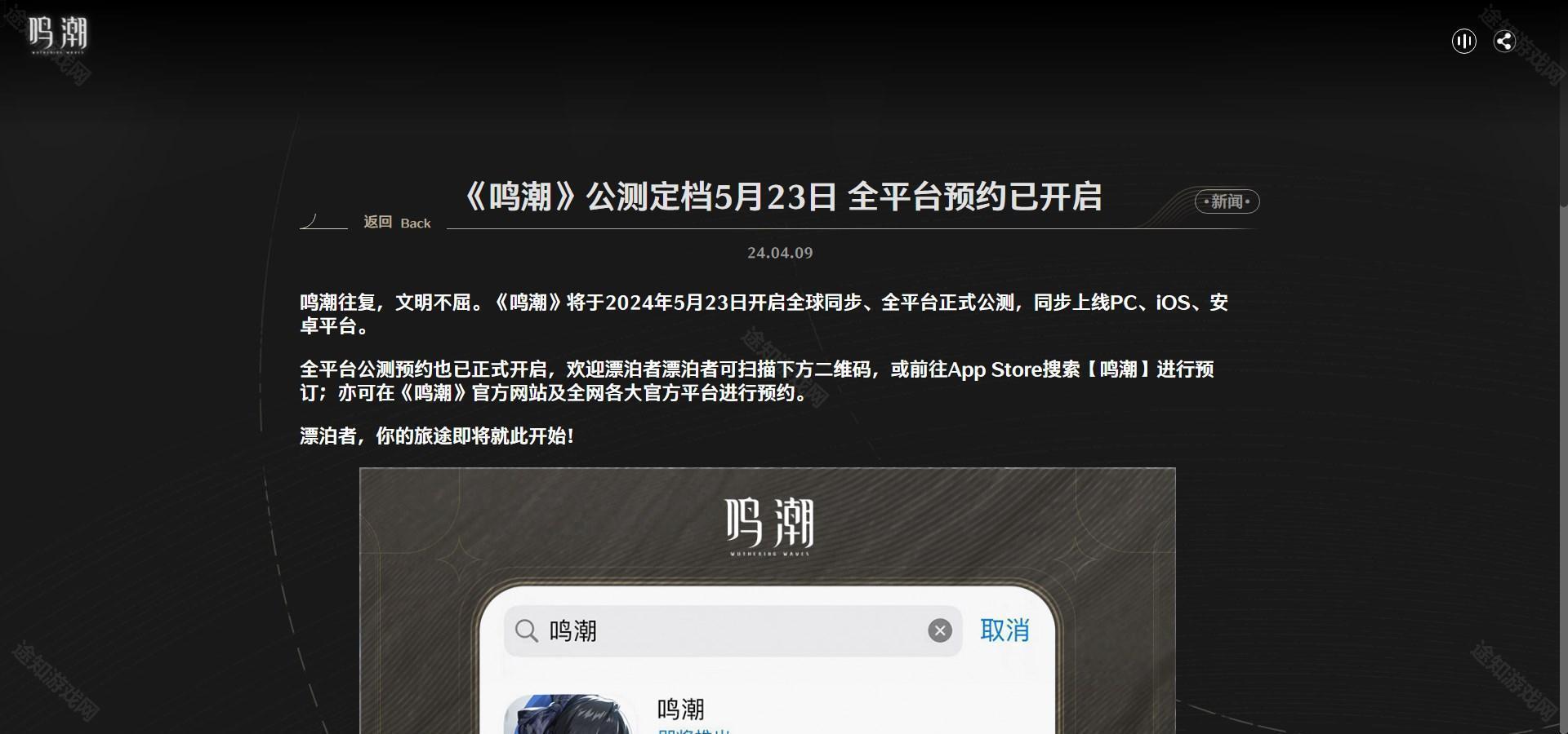 1、鸣潮将于2024年5月23日开启全球同步、全平台正式公测,同步上线PC、iOS、安卓平台。