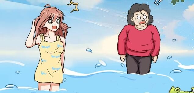 2、然后拖动物品栏中的鳄鱼到水中,看到鳄鱼之后,水里的两个人会被吓到,自己就站起来了,这样就不用二选一救人了,成功通关