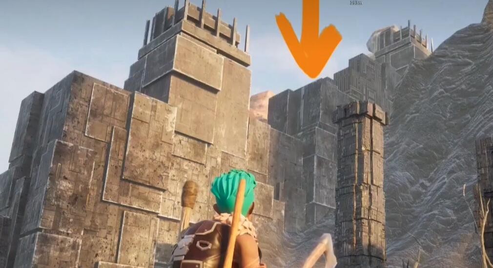 来到【古代文明的遗址】传送点,穿上耐热服,使用可以飞行的帕鲁飞到左边的遗迹城墙上即可拾取。