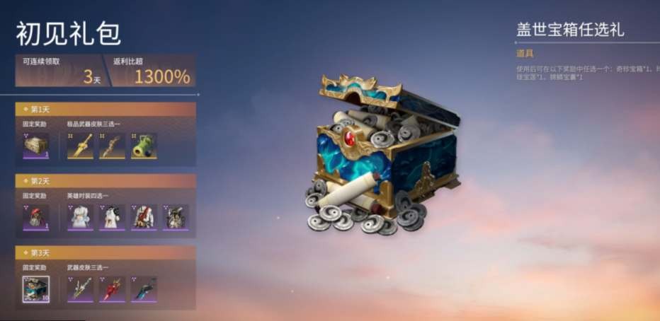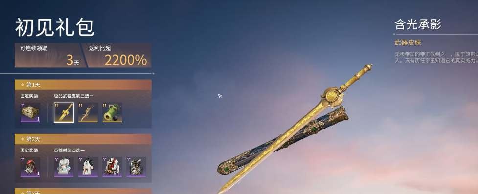 1、初见礼包没有必须规定玩家连续登录领取,但是因为是限时活动,所以还是建议大家尽早登录把奖励都领完。