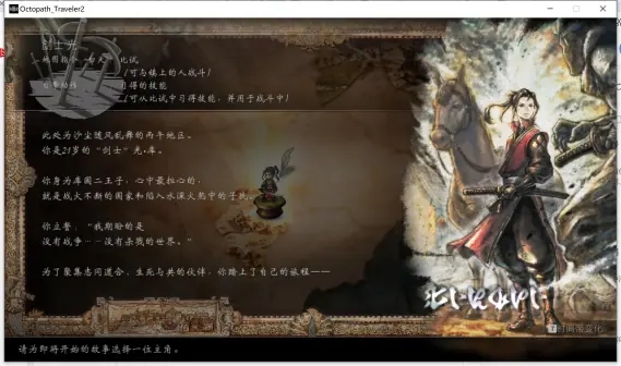 1、玩家需要扮演出身迥异,各怀绝技而又各有所求的八名旅人中其中一人,踏上他们的旅途。