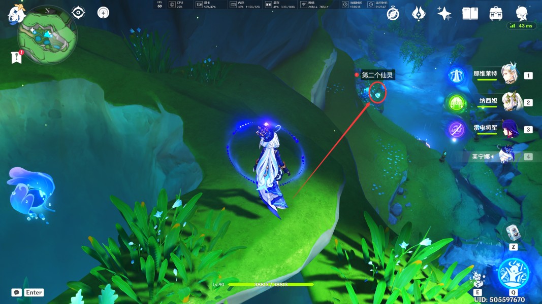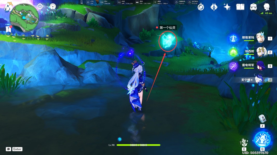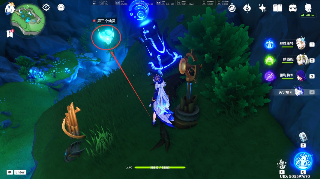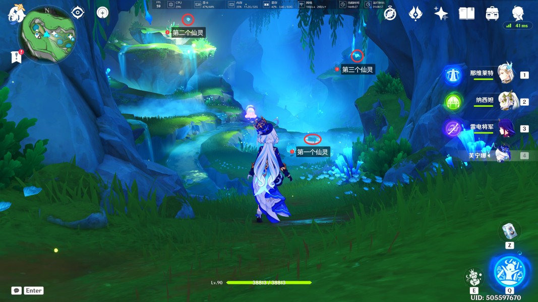 3、来到此处后,我们可以看到最深处需要归位三个仙灵,按照顺序逐一去寻找它们(此处还有两个水神瞳)。