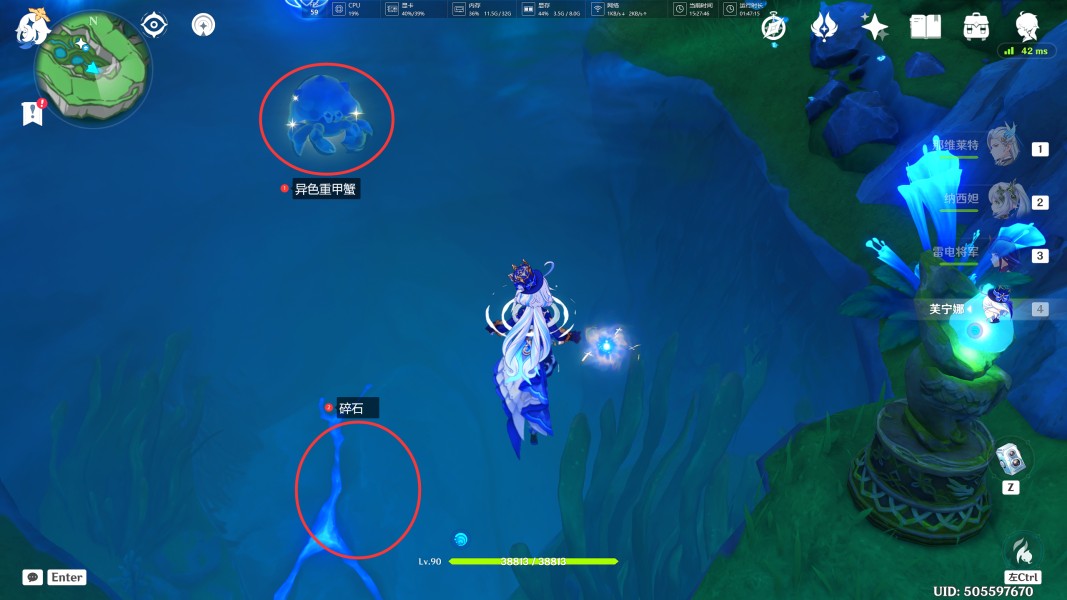 11、打开华丽的宝箱后会出现一个异色重甲蟹,我们吸取其能力后,将水潭下方的碎石击碎,会出现洋流。