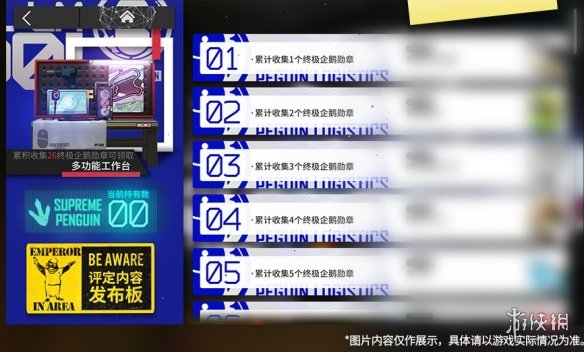 从图示可以看出,收集终极企鹅勋章能获得不菲的奖励,如作战录像、红票、龙门币以及各种材料等。