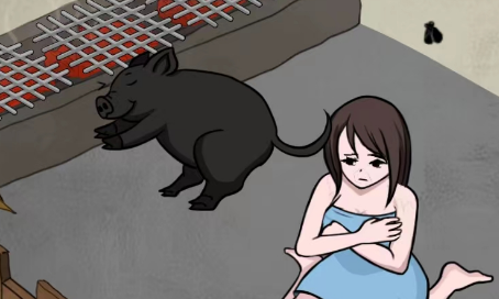 9、最后把猪拖给小姐姐吃掉即可过关