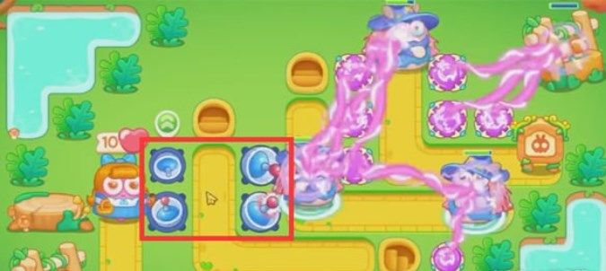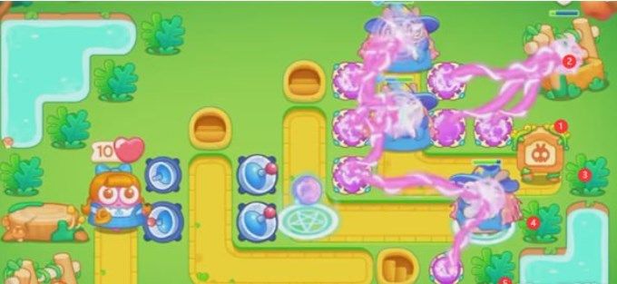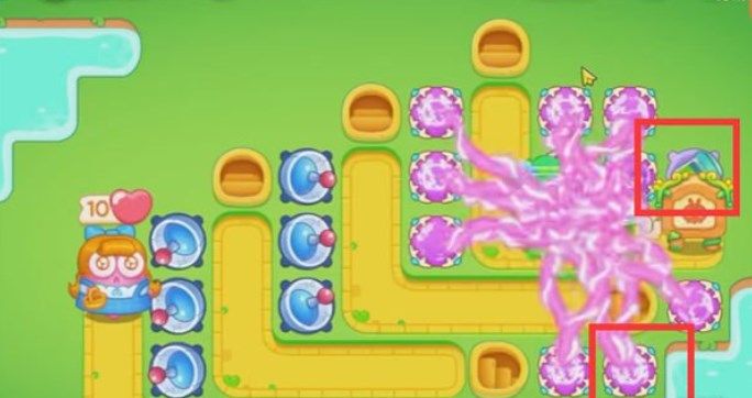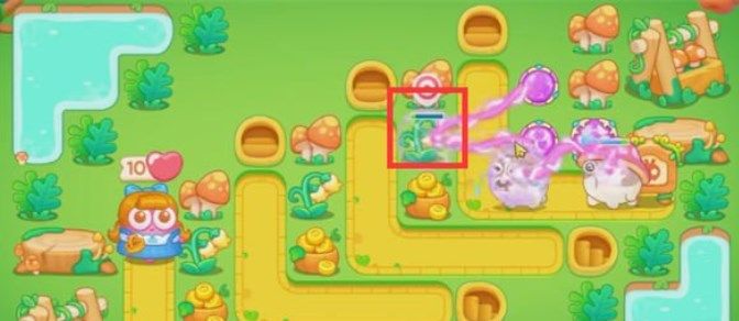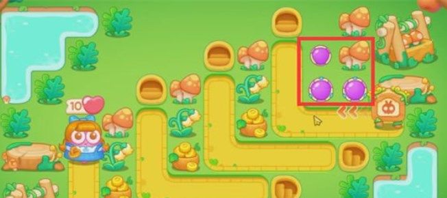 7、在下图位置继续放置一个毒针塔和魔法球,没什么难度了,基本可以顺利通过绿野奇缘37关啦。