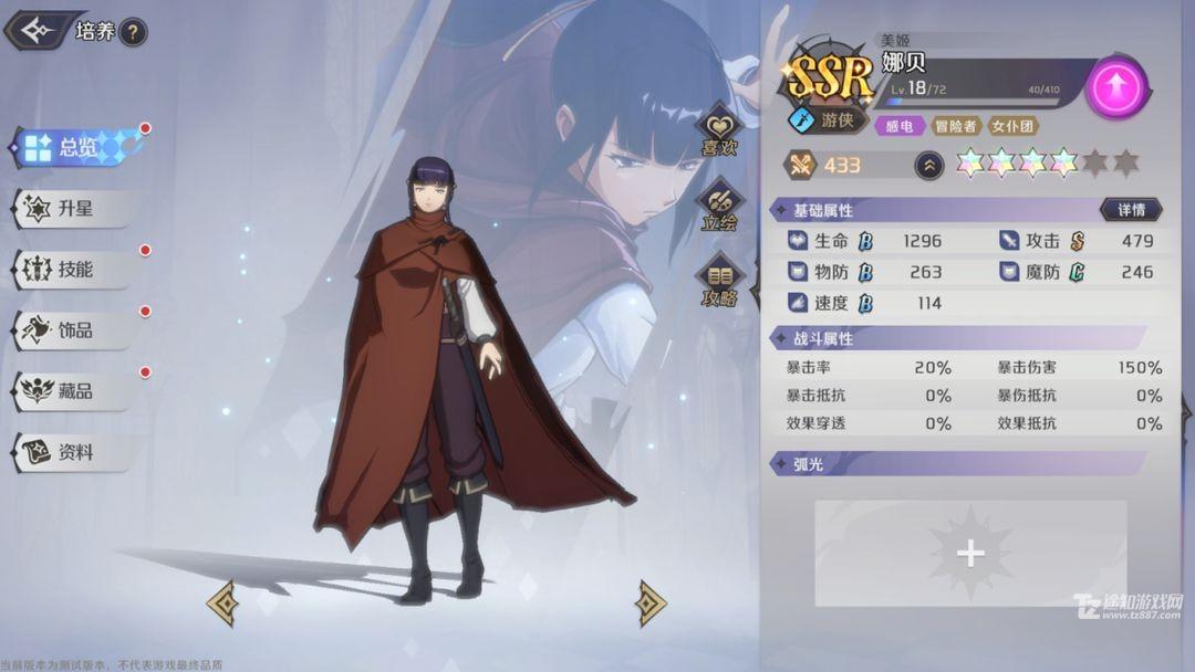 1、娜贝,初始为SR游侠,4星时品质提升为SSR。