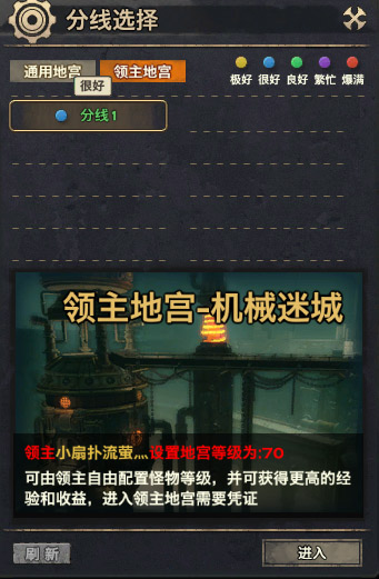 领主地宫的入口与普通地宫的入口相同,玩家可以通过标签选择进入普通地宫或者是领主地宫。
