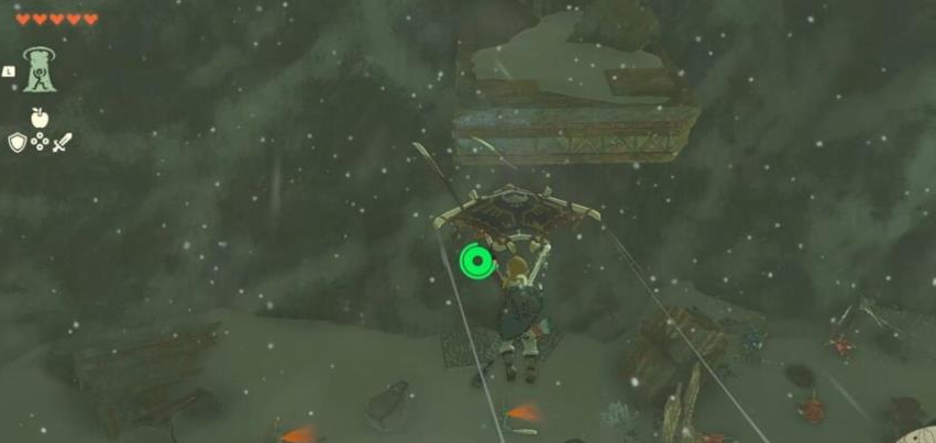 3、利用滑翔伞沿着特巴所指的两个篝火的偏向飞去,路上可以在平台苏息一下。
