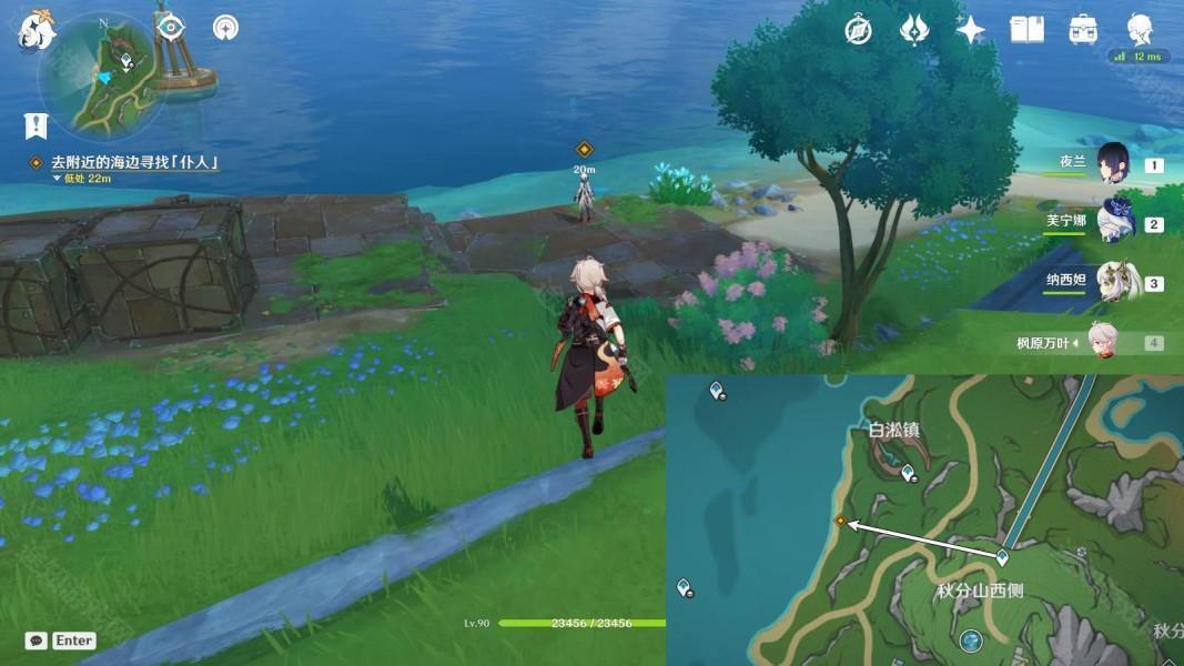1、首先传送到秋分山西侧锚点,往地图的西北方向飞,之后前往海边,与仆人对话。