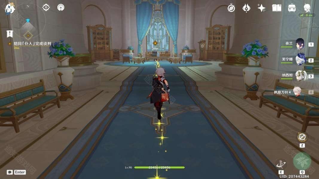 3、陪同仆人完成谈判,进入沫芒宫,前往那维莱特办公室,与那维莱特对话3分钟。