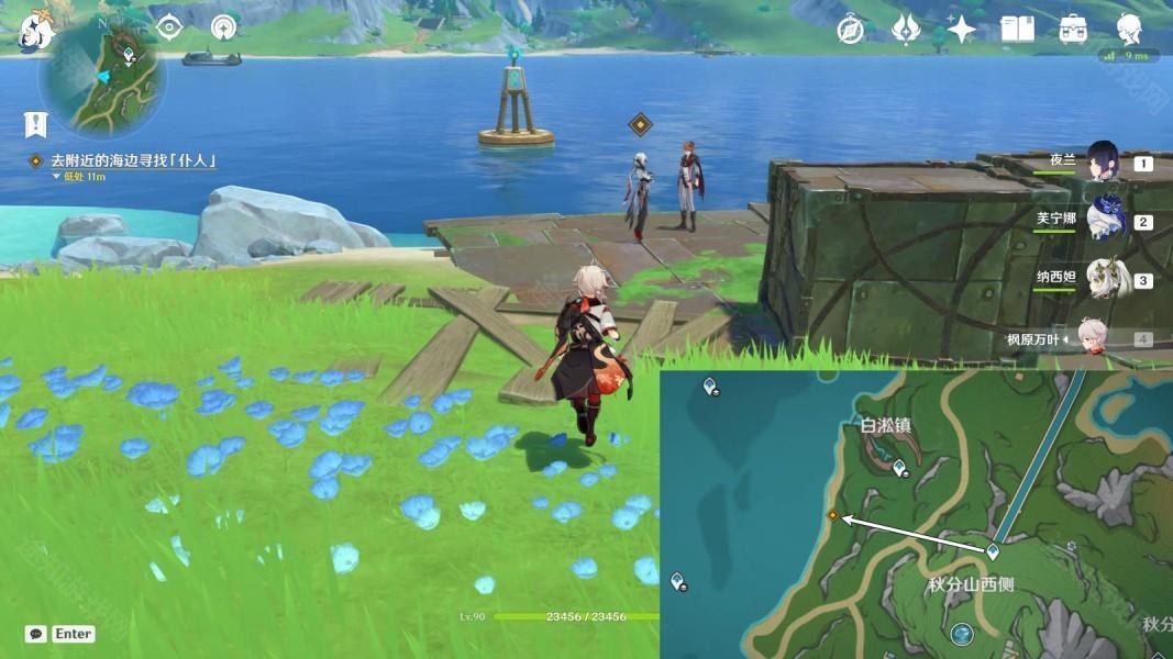 1、首先传送到秋分山西侧锚点,往地图的西北方向飞,前往海边和仆人公子对话5分钟。
