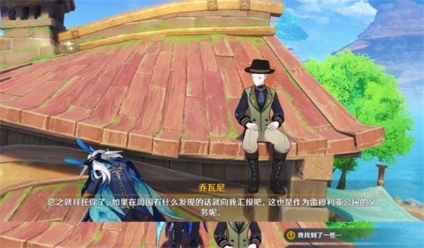 2、接着在房梁上找到NPC乔瓦尼进行对话帮助收集树枝。