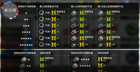 2、第七次及以后获得重复五星干员,每个可以获得8张黄票。