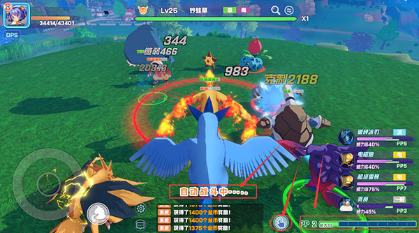 自动战斗功能在PP值的旁边,可以让电脑帮你战斗。现在的状态就是在进行自动战斗,如果想要切回手动战斗就再点击一下自动战斗功能。