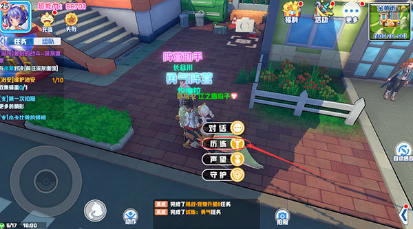 到了目标位置之后还要再靠近一点才能出现历练任务的选项,然后点击历练就可以进行历练任务了。
