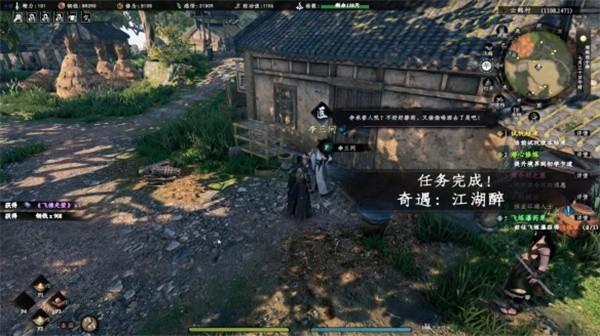 3、最后回到村中将江湖醉交给NPC李三问,即可完成。