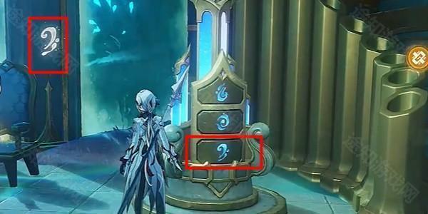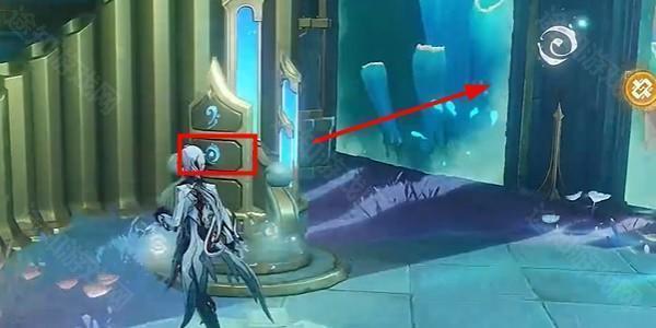 3、来到对面位置查看墙上的机关可以启动第二行的装置。