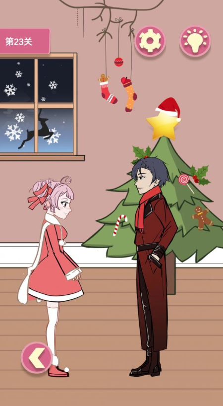 3、最后礼盒打开,把女装给猫耳男,蝴蝶结给男神就可以通过本关了!