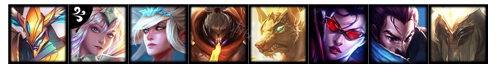 英雄分别为:狗头、薇恩、剑魔、贾克斯、风女、亚索、约里克、拉克丝。