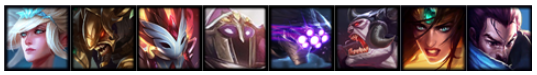 英雄分别为:玛尔扎哈、剑豪、千珏、赛恩、希维尔、风女、螳螂、剑圣。