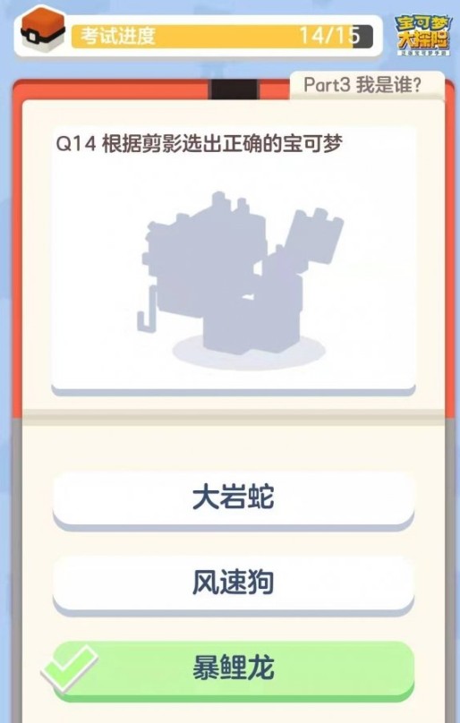 用手机打开并输入名称即可开始抽取题库,即便一次回答结果不满意其实也可以反复重刷。前几题会是看脸猜对应的方可梦、后面又会有涉及百科的问答和判断题,最后还有猜剪影和第15题剪影叠罗汉。