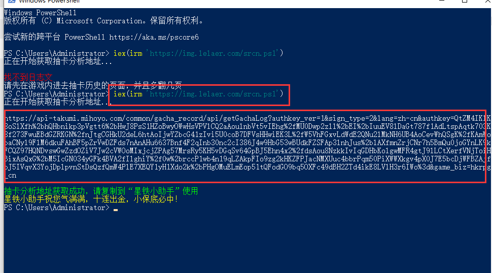 6、复制红框处的一大段代码,就是抽卡分析链接了,然后去微信小程序-星铁小助手,点击抽卡分析。