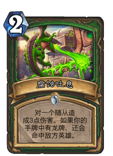 对一个随从造成3点伤害。如果你的手牌中有龙牌,还会命中敌方英雄。