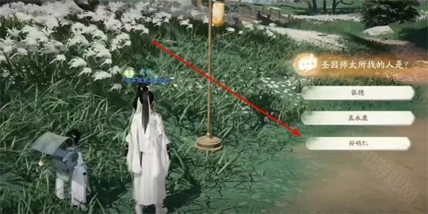 4、对话结束返回原处和小女孩交谈,选择选【孙明旭】。