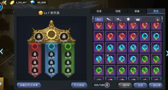 符文等级分为低级,中级,高级,最高级,传说级。
