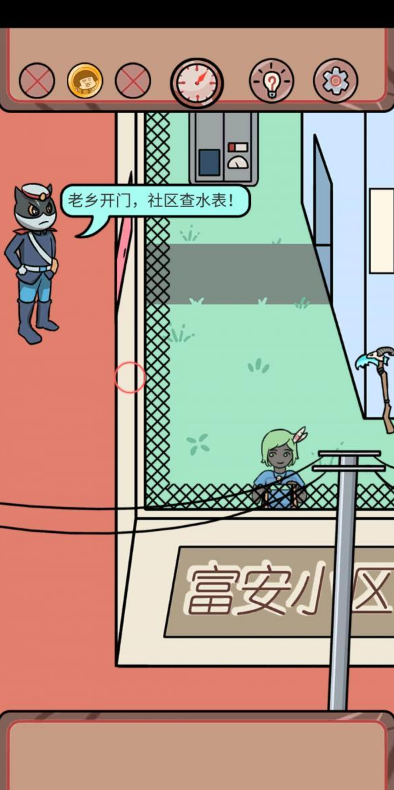 点击梯子获得,关电闸,梯子对下面的墙使用,然后爬梯子