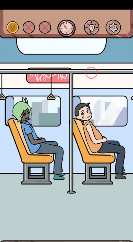 点点击小胖手里的游戏杂志获得,然后对前面坐着的使用游戏杂志,点击获得地上的消食片给小胖,点击后排的窗户,然后点击座位