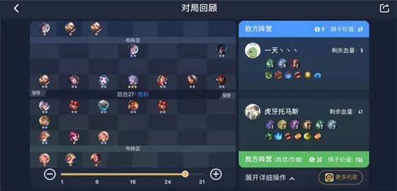 11回合必须升级到6人口,10回合之后就要存钱,不要去刷新牌,目的是要再16回合升级到8人口并且保留至少20-30的存款。这里比较难度过,需要靠我们的经验,调整站位,上打工能力强的英雄来尽可能的减少掉血。比如我们要打法师,就要上一个双辅助,避免扣血太多。比如牌库里刷新一个甄姬,我发现这回合上3长安打不过对面,那我就果断把1星的狄仁杰拿下来换成甄姬,我就有可能打过对面,减少掉血。其实这些就是运营,运营是建立在大量的对局经验前提上的,大家如果想学具体的运营还是需要多看直播,思考为什么我这个回合要升级人口,为什么不上3长安而上一个甄姬,为什么上双辅助不上3射手,最终总结出自己的运营方法。