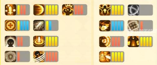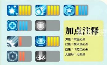 黄色是职业必点、红色是旋风流必点、蓝色飞盾流必点、无图标无需点。