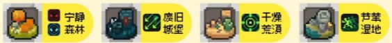 潮湿溶洞、废旧城堡、干燥沙漠、机械大陆