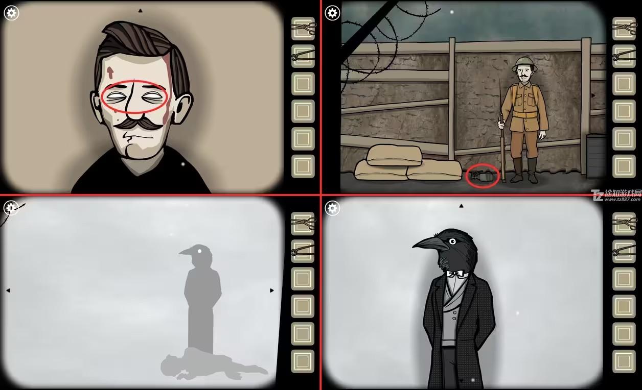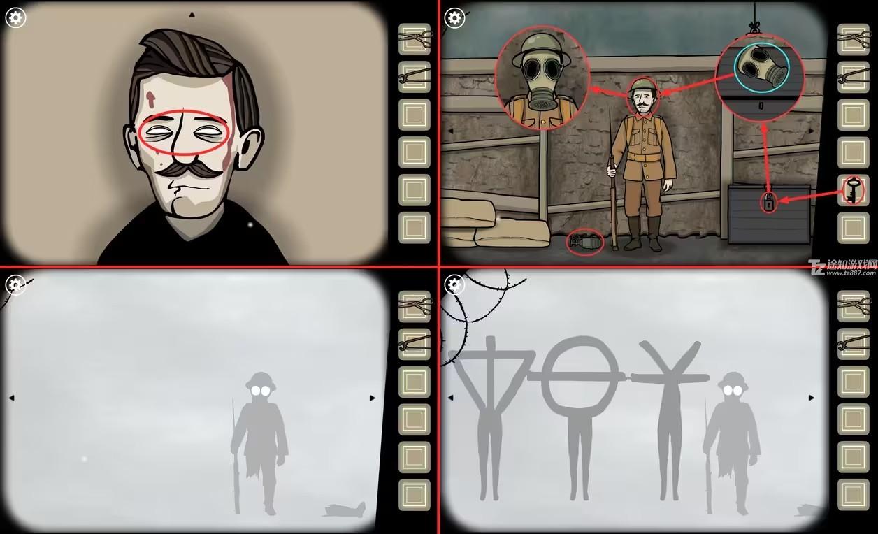 13、再次进入莱纳德记忆中的战场,用(钥匙)打开战壕里的箱子,获得一副(毒气面具),给莱纳德带上。
