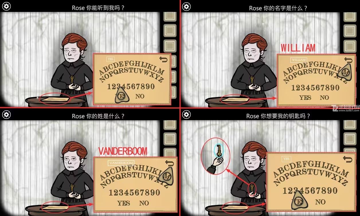 1、点击萝丝,她似乎继承了母亲艾达的能力,在尝试和我们扮演的威廉鬼魂交流.