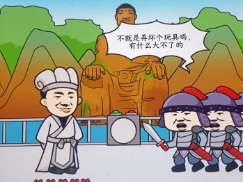 1、最后一题,士兵说出“你是在挠痒痒吗”后,把背景里的大佛移走,然后把士兵放上去就能通关了