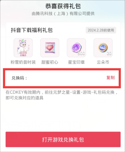 4、将兑换码复制进游戏后使用即可获得奖励、