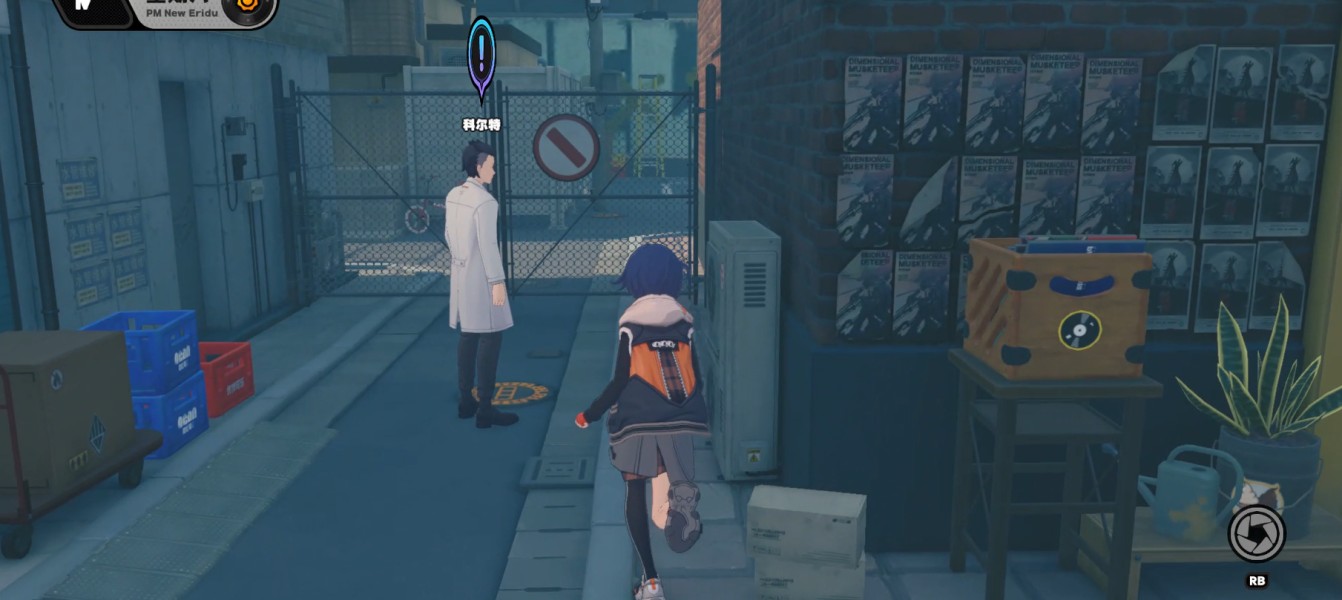 1、在绳网上看到生意指引【一起炸光光】,前往录像店门口,门口有一个奇怪的男人科尔特。