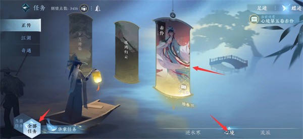 2、在【正传】中找到【心境】,能够看见【赤伶】。