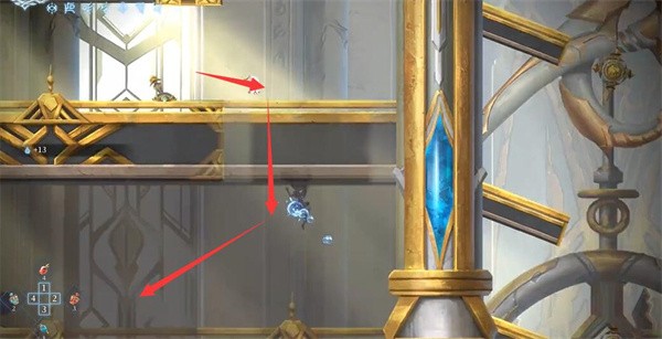 2、接着从右侧位置跳下,向左前进。