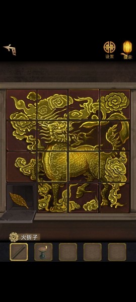 9、获得石狮子密码,并拿到另一片金叶子,回到刚才的场景使用金叶子开箱子,得到朱砂粉和香。