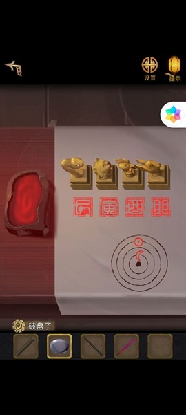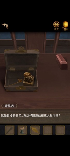 19、回到密室在最上面的箱子里装上铜板,回忆密信和印章的提示,得出外面两圈代表日期,里面两圈代表月份。