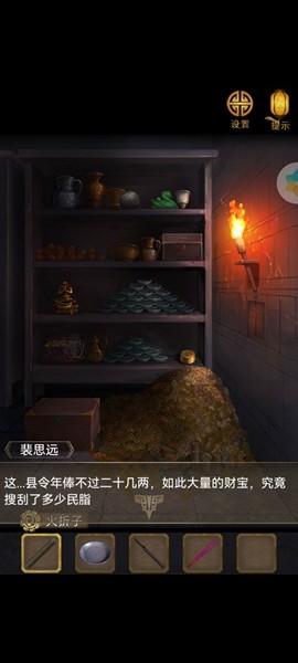 14、用火折子点亮火把,然后在钱堆里搜块玉佩出来。